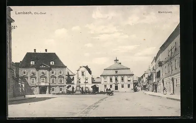 AK Lambach /Ob.-Oest., Strassenpartie am Marktplatz