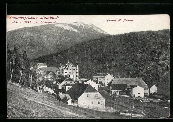 AK Lambach, Ortsansicht mit Ossa und Gasthof M. Ascherl