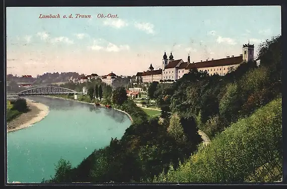 AK Lambach a. d. Traun, Teilansicht mit Brücke