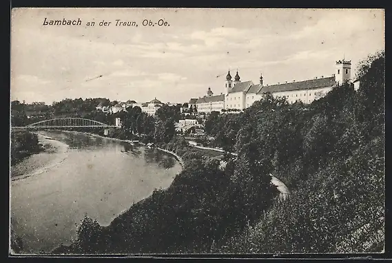 AK Lambach a. d. Traun, Uferpanorama mit Schloss