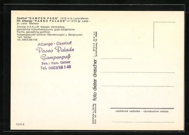 AK Lana-Meran, Fünf Ansichten vom Gasthof Gampen Pass