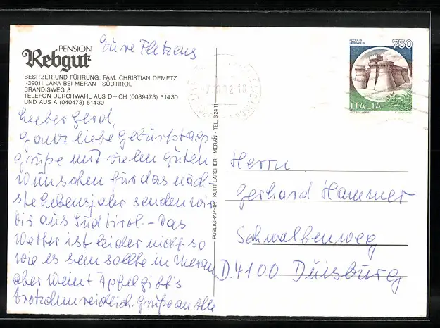 alte Ansichtskarte, gelaufen 1992, guter Zustand
