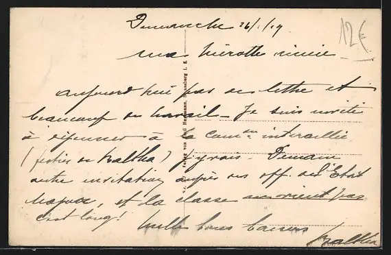 Personenbezogene Daten auf der Rückseite der Karte wurden durch blauen Textmarker unkenntlich gemacht. Die blauen Stellen sind auf die Vorderseite durchgeweicht und wirken sich negativ auf das Postkartenfoto aus
