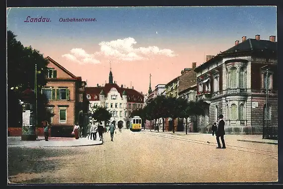 AK Landau, Ostbahnstrasse, Strassenbahn
