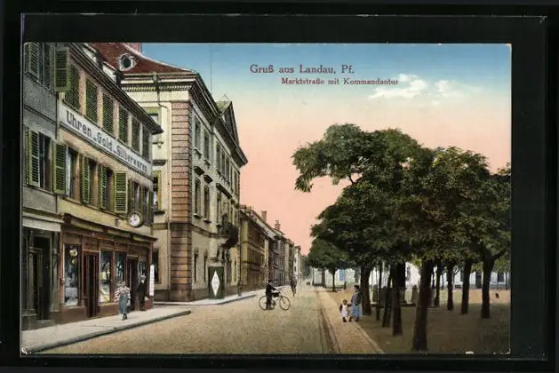 AK Landau /Pf., Marktstrasse mit Kommandantur