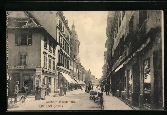 AK Landau /Pf., Mittlere Marktstrasse mit Geschäften