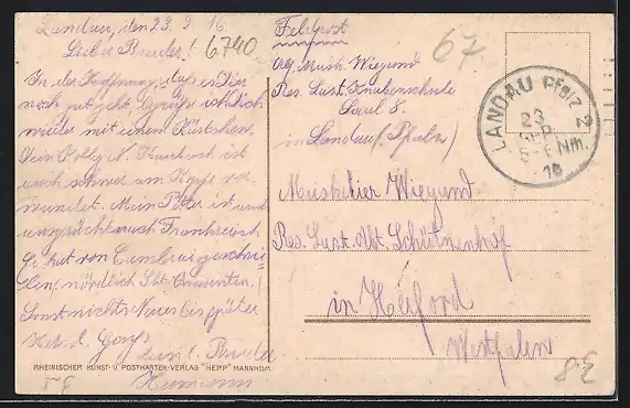 alte Ansichtskarte, gelaufen 1916, Stempelspur, guter Zustand