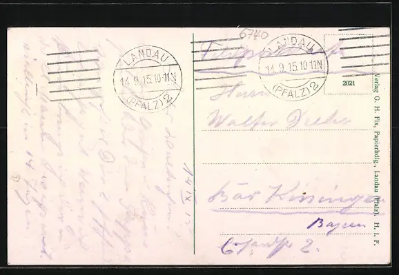 alte Ansichtskarte, gelaufen 1915 als Feldpost, Stempelspur, guter Zustand