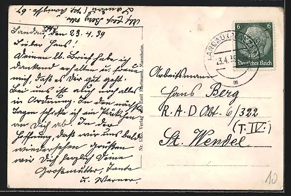 alte Ansichtskarte, gelaufen 1939, guter Zustand