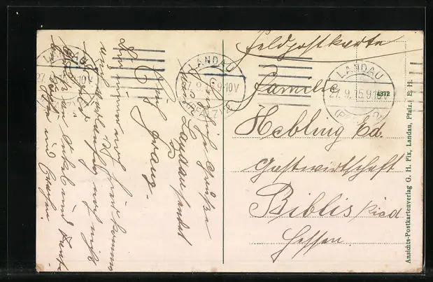 alte Ansichtskarte, gelaufen 1915, Stempelspur, Abriebspur re. oben und re. unten, guter Zustand