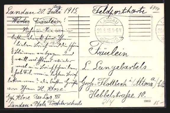 alte Ansichtskarte, gelaufen 1915, Stempelspur, guter Zustand