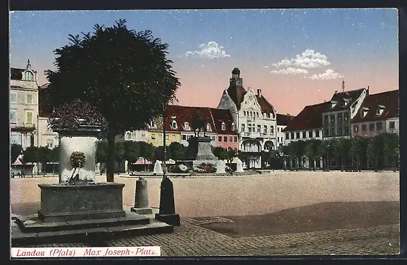 AK Landau / Pfalz, Max Josephs Platz mit Denkmal