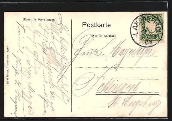 alte Ansichtskarte, gelaufen 1908, Stempelspur, guter Zustand