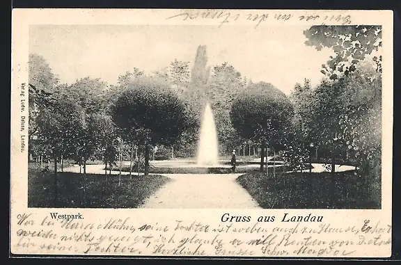 AK Landau / Pfalz, Westpark mit Fontäne