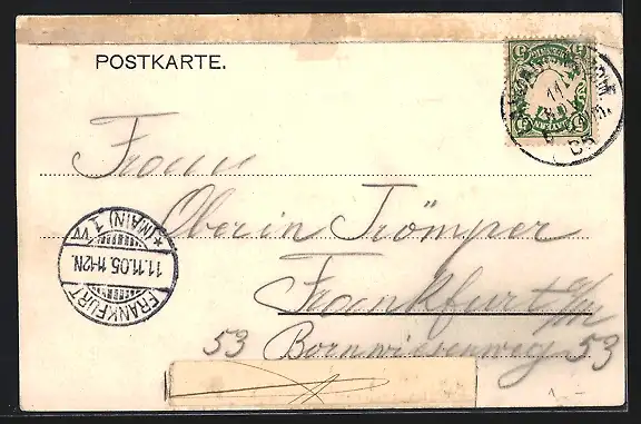 alte Ansichtskarte, gelaufen 1905, rückseitig Klebe- und Papierreste, guter Zustand