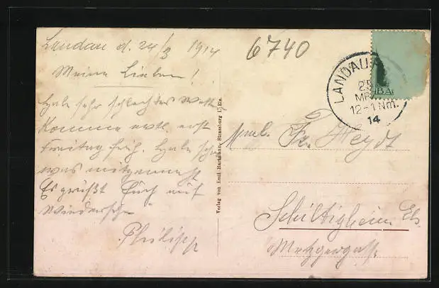 alte Ansichtskarte, gelaufen 1914, Briefmarke entfernt, guter Zustand