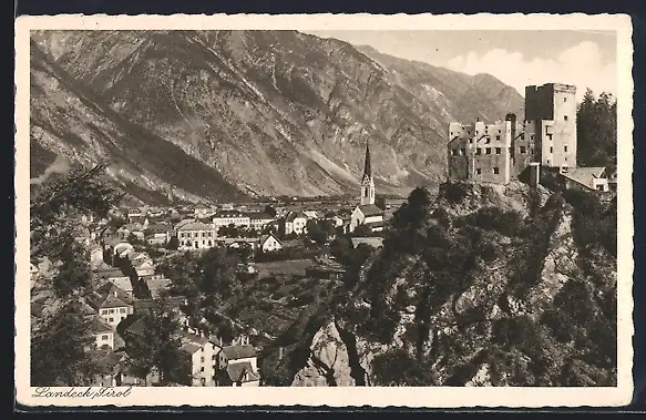 AK Landeck, Gesamtansicht mit Burg