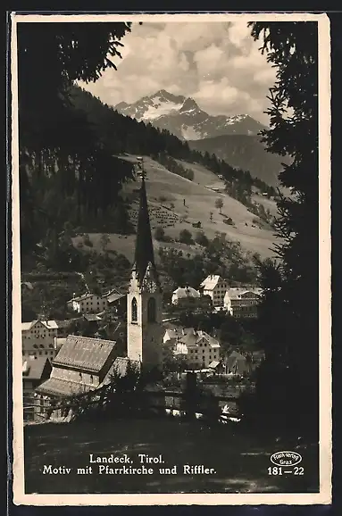AK Landeck, Motiv mit Pfarrkirche und Riffler