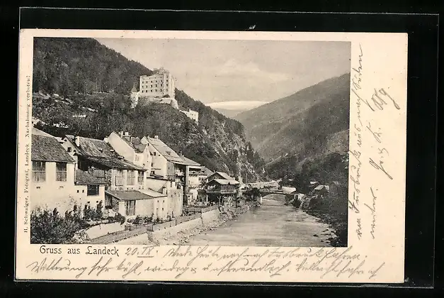 AK Landeck, Ortsansicht mit Brücke