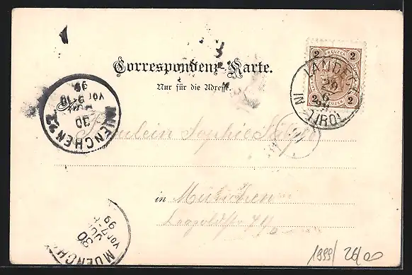 gelaufen 1899, Eckknicke li. unten und re. oben, guter Zustand