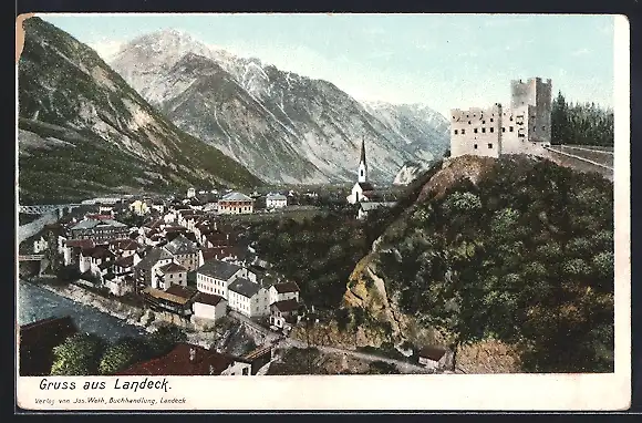 AK Landeck, Panoramablick über den Ort mit Burg, um 1900