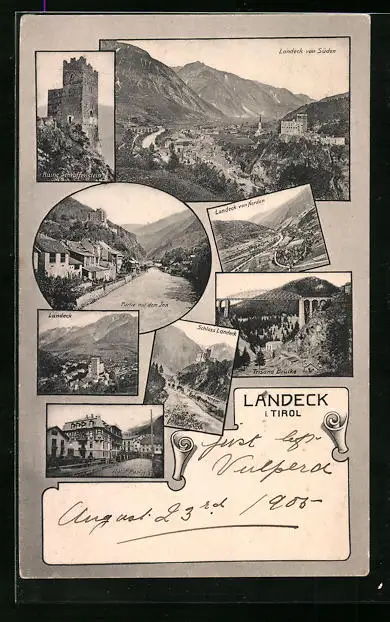 AK Landeck, Ruine Schroffenstein, Innpartie, Trisana Brücke, Schloss