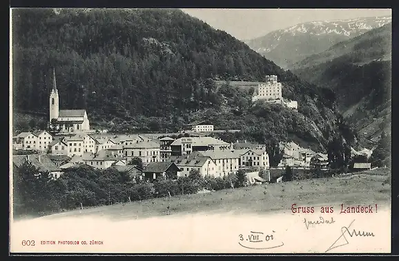 AK Landeck, Teilansicht mit Kirche