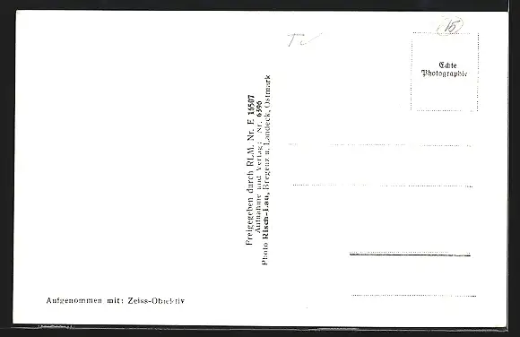 Personenbezogene Daten auf der Rückseite der Karte wurden durch blauen Textmarker unkenntlich gemacht. Die blauen Stellen sind auf die Vorderseite durchgeweicht und wirken sich negativ auf das Postkartenfoto aus
