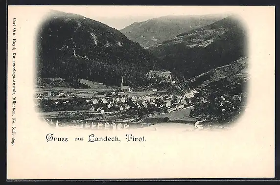 AK Landeck /Tirol, Ortsansicht mit Viadukt aus der Vogelschau