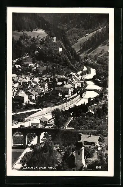 AK Landeck i. T., Ortsansicht mit Flusspartie aus der Vogelschau