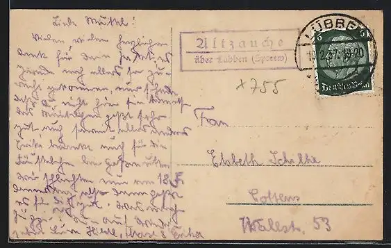 AK Landpoststempel Altzauche über Lübben (Spreew.)