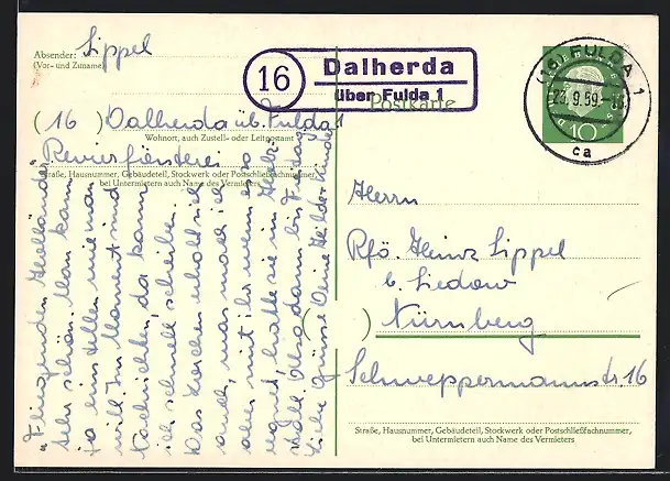 AK Landpoststempel Dalherda über Fulda 1