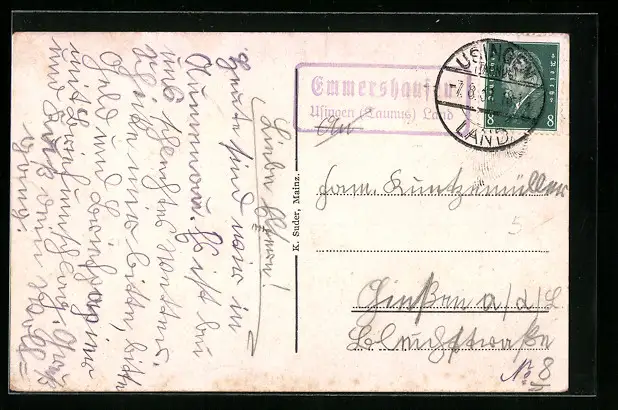 AK Landpoststempel Emmershausen, Usingen (Taunus) Land