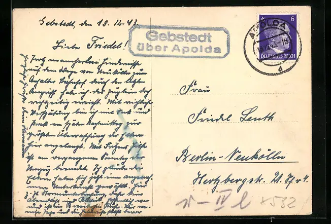 gelaufen 1943, Eckknick re. unten, guter Zustand
