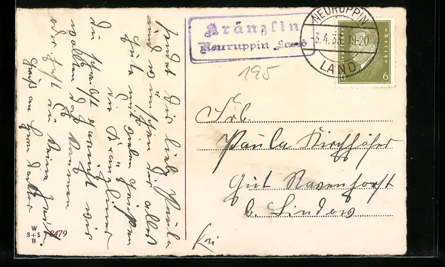 AK Landpoststempel Kränzlin, Neuruppin Land