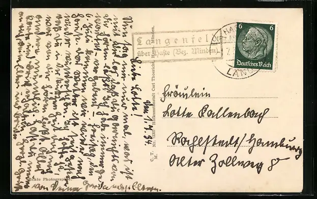 AK Landpoststempel Langenfeld über Haste /Bez. Minden