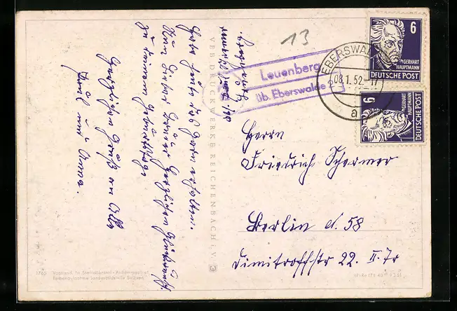 alte Ansichtskarte, gelaufen 1952, Eckknicke li., guter Zustand