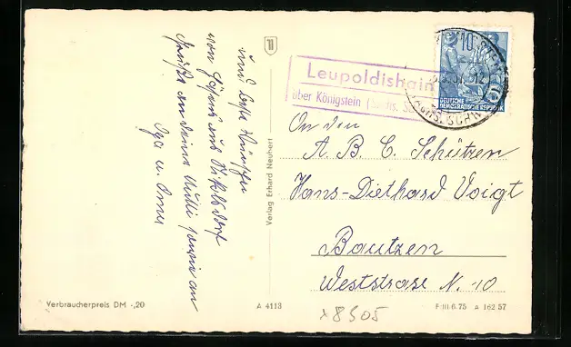 AK Landpoststempel Leupoldishain über Königstein /Sächs. Schweiz