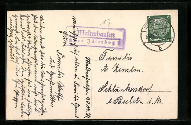 AK Landpoststempel Malterhausen über Jüterbog