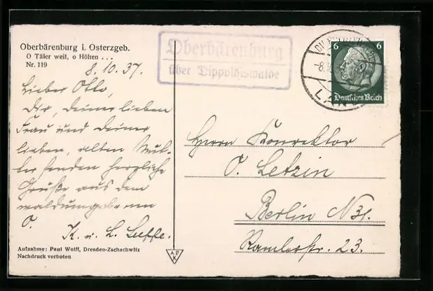 AK Landpoststempel Oberbärenburg über Dippoldiswalde