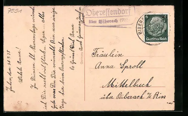 AK Landpoststempel Oberessendorf über Biberach (Riss)