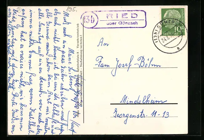 gelaufen 1956, Bugspuren li. oben, guter Zustand