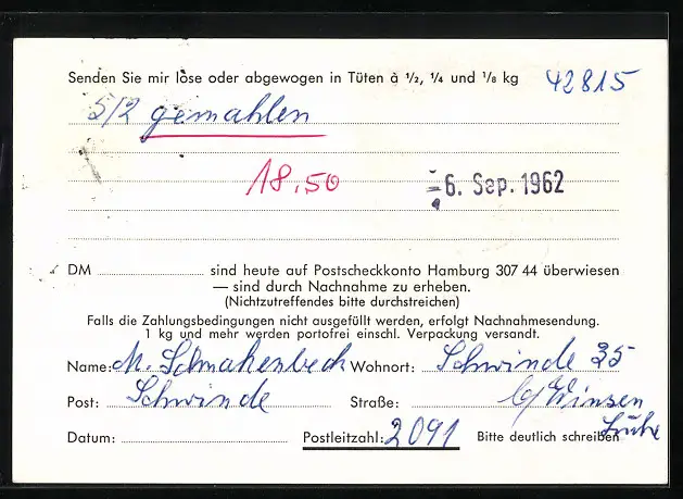 alte Ansichtskarte, gelaufen 1962, guter Zustand