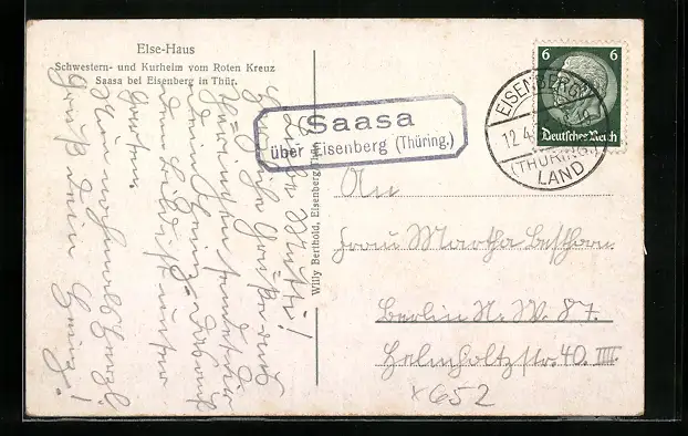 AK Landpoststempel Saasa über Eisenberg (Thür.)