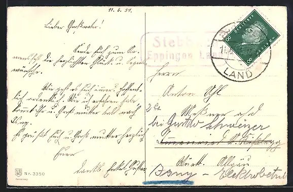 alte Ansichtskarte, gelaufen 1931, Eckknick li. oben, guter Zustand