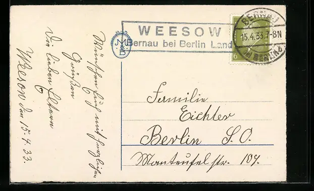 AK Landpoststempel Weesow, Bernau bei Berlin