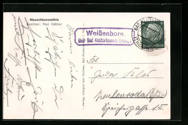 AK Landpoststempel Weissenborn über Bad Klosterlausnitz (Thüring.)