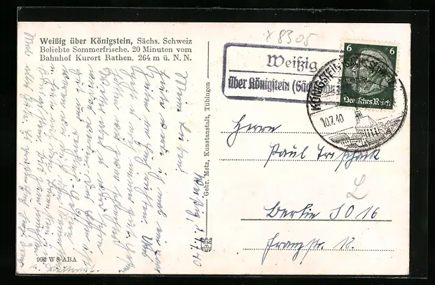AK Landpoststempel Weissig über Königstein i. d. Sächs. Schweiz