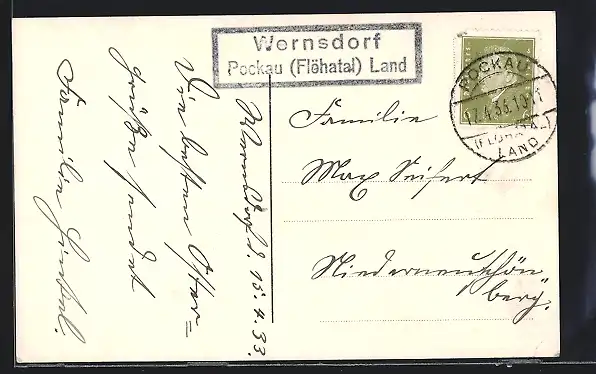 AK Landpoststempel Wernsdorf /Pockau (Flöhatal) Land