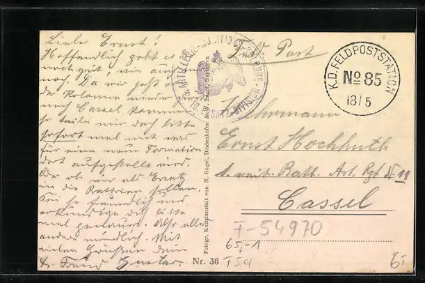 alte Ansichtskarte, gelaufen als Feldpost, guter Zustand